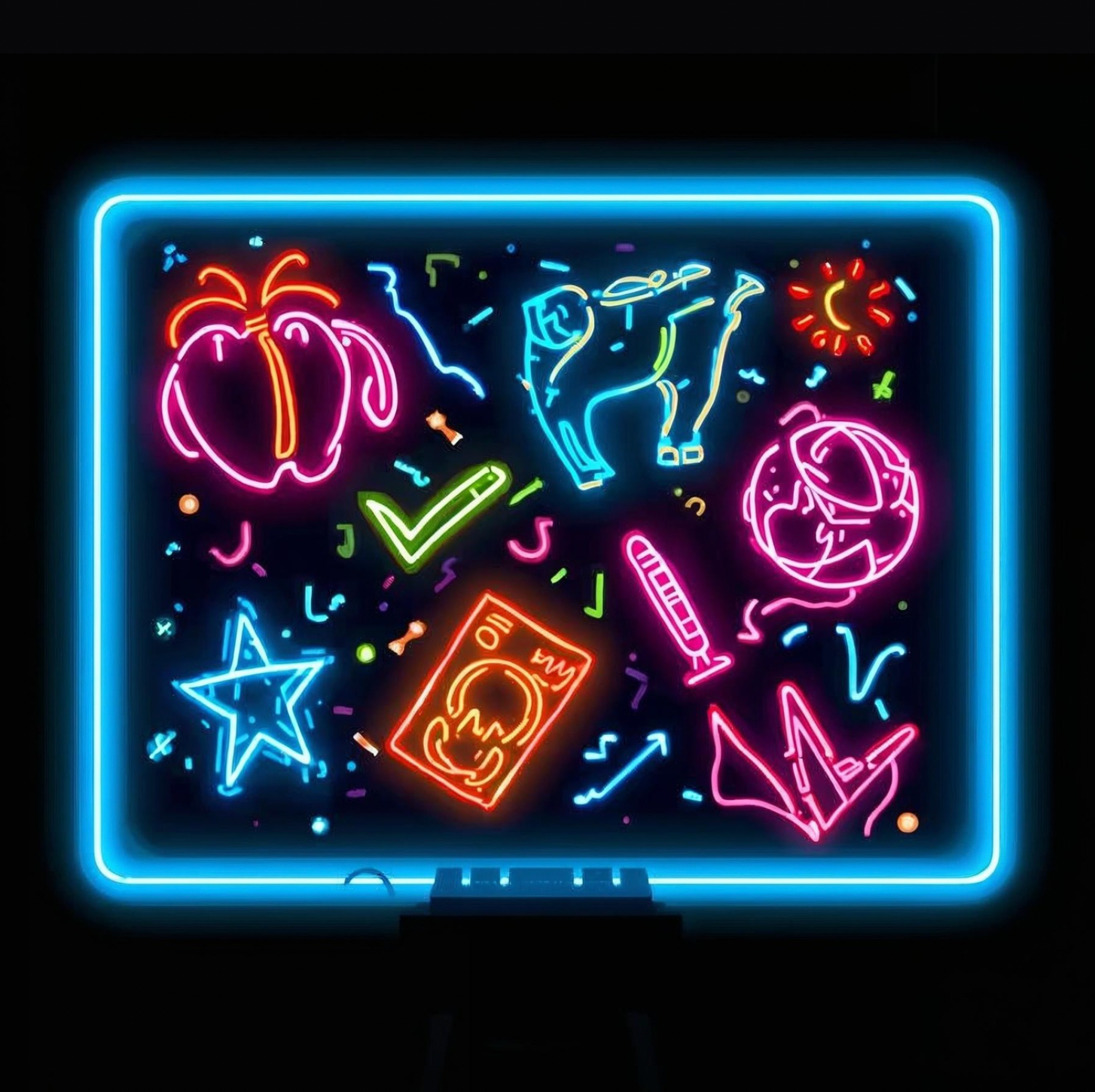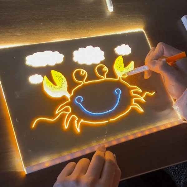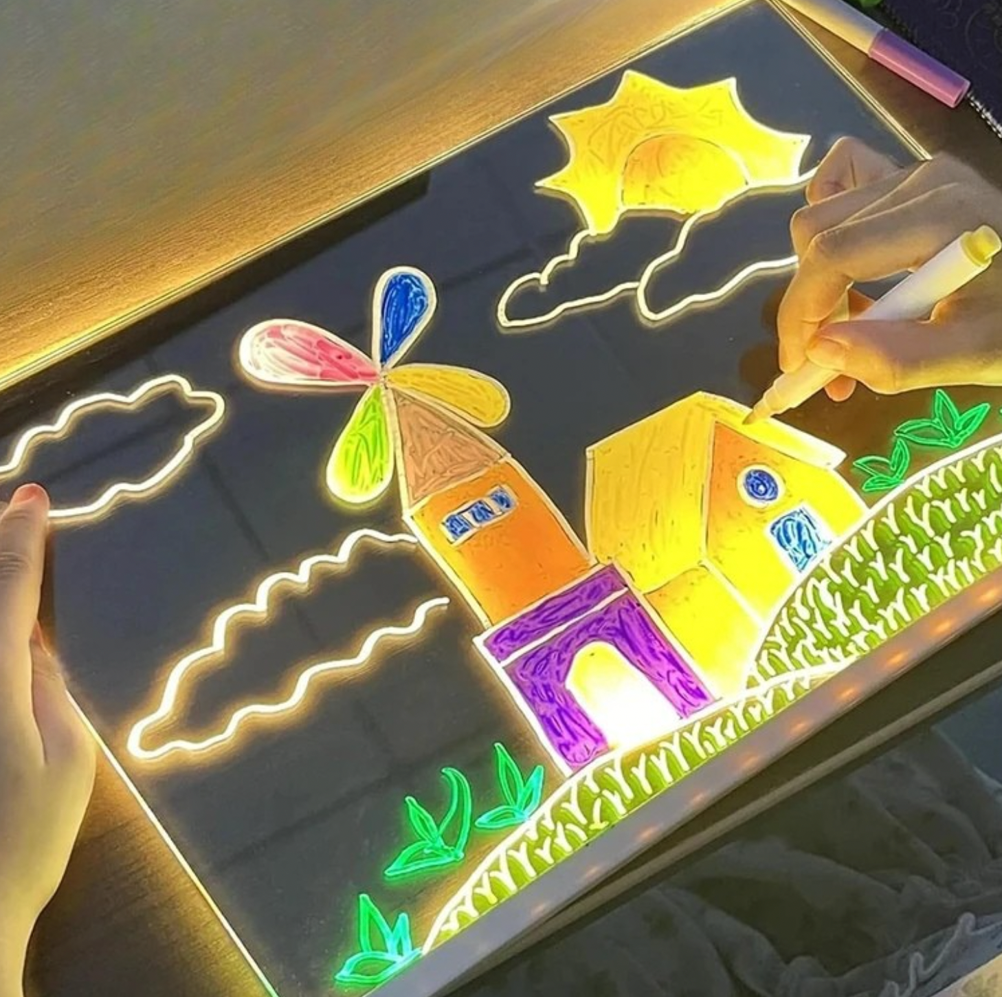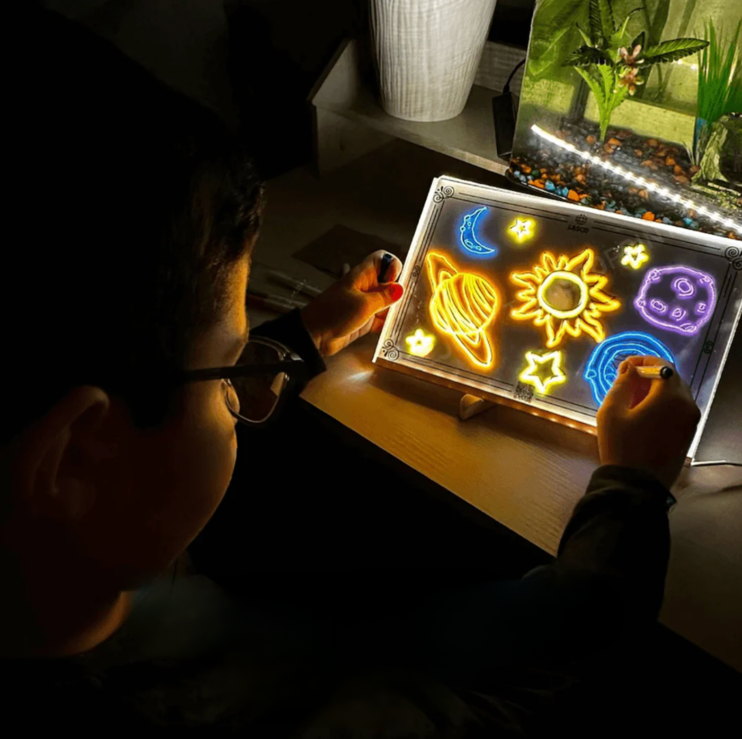 Transforms simple doodles into glowing works of art, the vibrant neon colors and reusable design, encourages exploration, play, and endless self-expression — making creativity shine brighter than