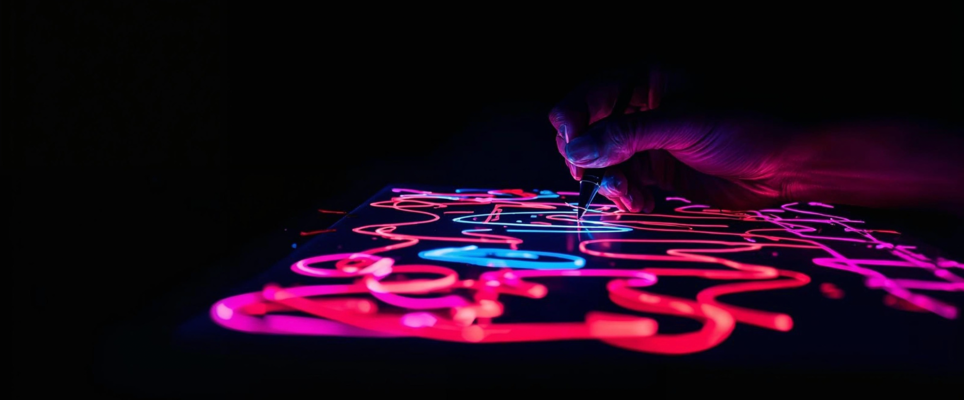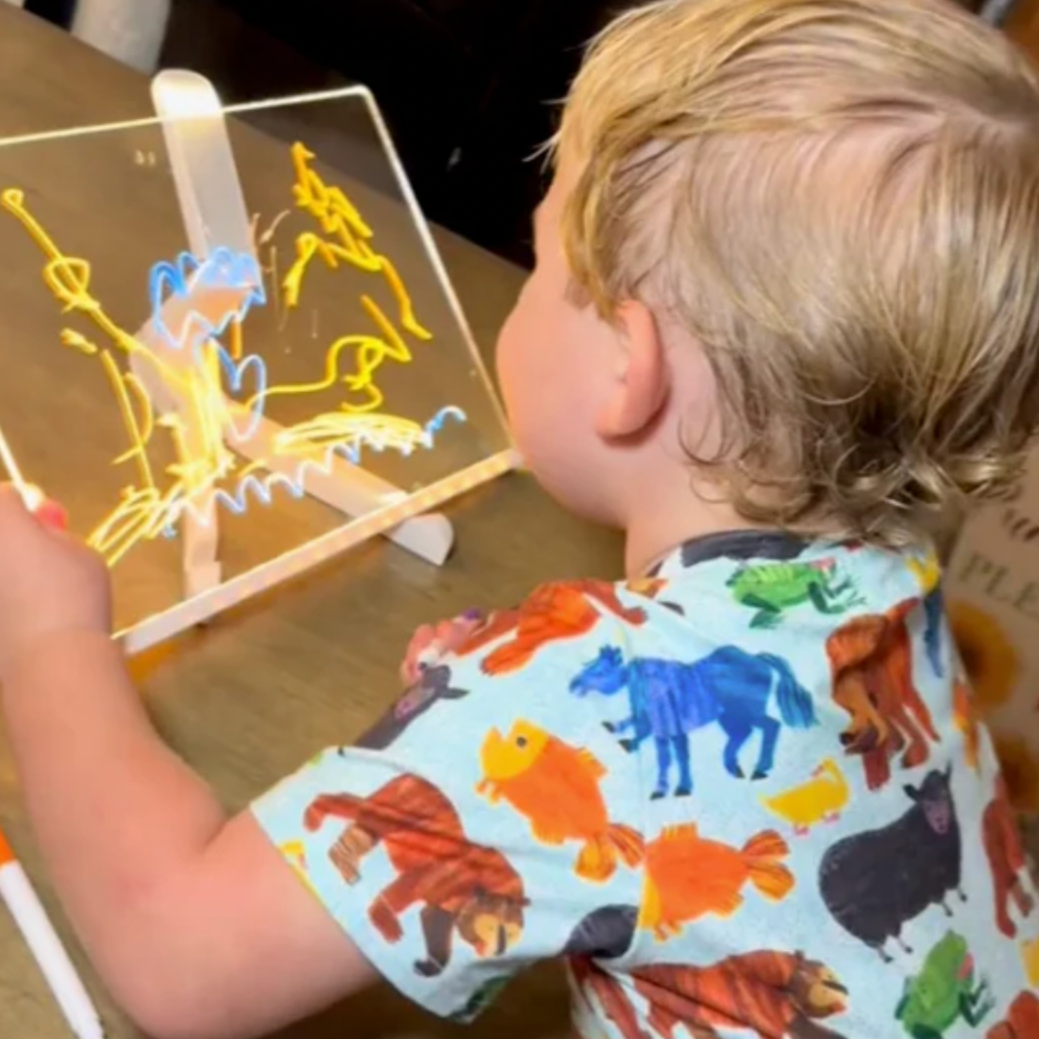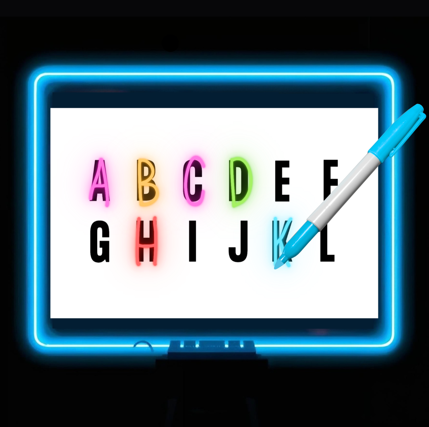 Transforms simple doodles into glowing works of art, the vibrant neon colors and reusable design, encourages exploration, play, and endless self-expression — making creativity shine brighter than